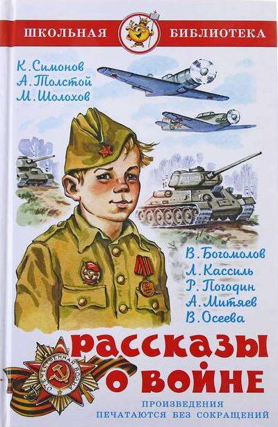 Рассказы о войне : рассказы / С. Алексеев, В. Богомолов, А. Митяев; худож. Ю. Копейко, А. Кузнецов, А. Лурье, В. Челак. - Москва : Вакоша, 2021. – 80с.: ил. – (Детям о войне).В книгу входят рассказы С. Алексеева, В. Богомолова, А. Митяева о войне, подвиге, дружбе и находчивости — тех главных вещах, о которых необходимо знать детям.